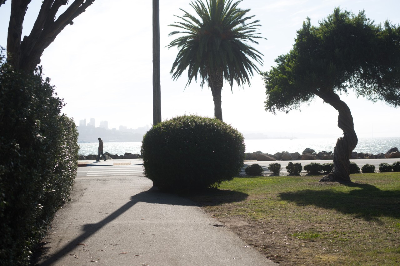 Treasure island, CA. Once used as military base, the island itself is just a big slab of poured concrete. Now theres a few section 8 complexes and a small grocery store. Has the feeling of a small country town without the cows.